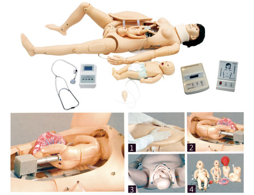 高級分娩與母子急救模型 該綜合教學(xué)模型很好的結(jié)合了護(hù)理模型和產(chǎn)科分娩模型,可進(jìn)行產(chǎn)前檢查,演示整個分娩過程(包括產(chǎn)前、產(chǎn)時和產(chǎn)后)以及母嬰的護(hù)理和急救。